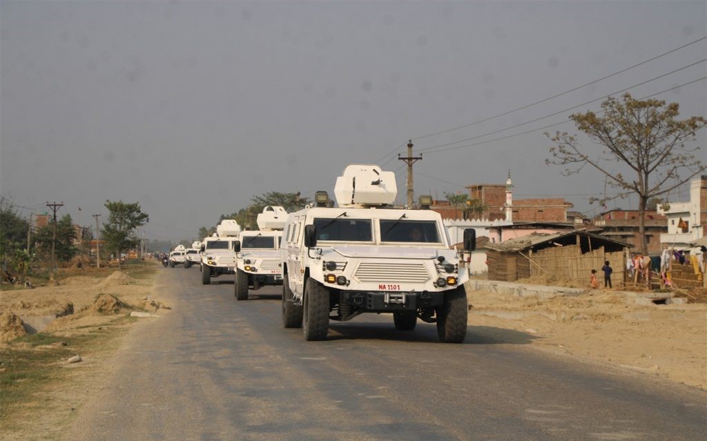रौतहटमा तैनाथ श्री नारायणदल गण ले फागुन २१ गते हुने निर्वाचनलाई लक्षित गर्दै अत्याधुनिक सैनिक सवारी साधनसहित सुरक्षा निगरानी बढाएको हो। सेनाले जिल्लाका विभिन्न मतदान स्थलहरूमा एकैसाथ गस्ती परिचालन गर्दै सम्भावित जोखिम नियन्त्रणमा लिन सक्रियता बढाएको जनाएको छ।