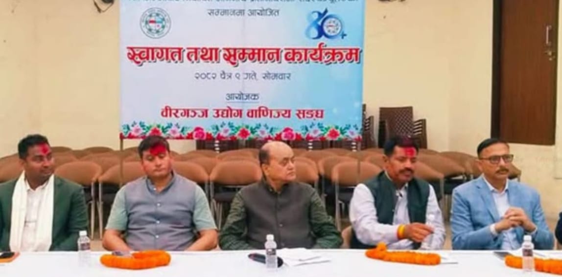वीरगञ्ज उद्योग वाणिज्य संघ ले पर्सा जिल्लाबाट नवनिर्वाचित चारै जना प्रतिनिधिसभा सदस्यहरूलाई एक कार्यक्रमका बीच स्वागत तथा सम्मान गरेको छ।पर्साका चार निर्वाचन क्षेत्रबाट निर्वाचित सांसदहरू हरि पन्त क्षेत्र नं. १, सुशील कुमार कानु क्षेत्र नं. २, रामाकान्त चौरसिया क्षेत्र नं. ३ र टेक बहादुर शाक्य क्षेत्र नं. ४ लाई संघका अध्यक्ष हरी गौतम ले सम्मान गरेका हुन्।